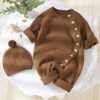 Personalized Baby Bodysuit Set – Custom Embroidered Newborn Knit Outfit with Hat – Personalized Baby Clothes Gift